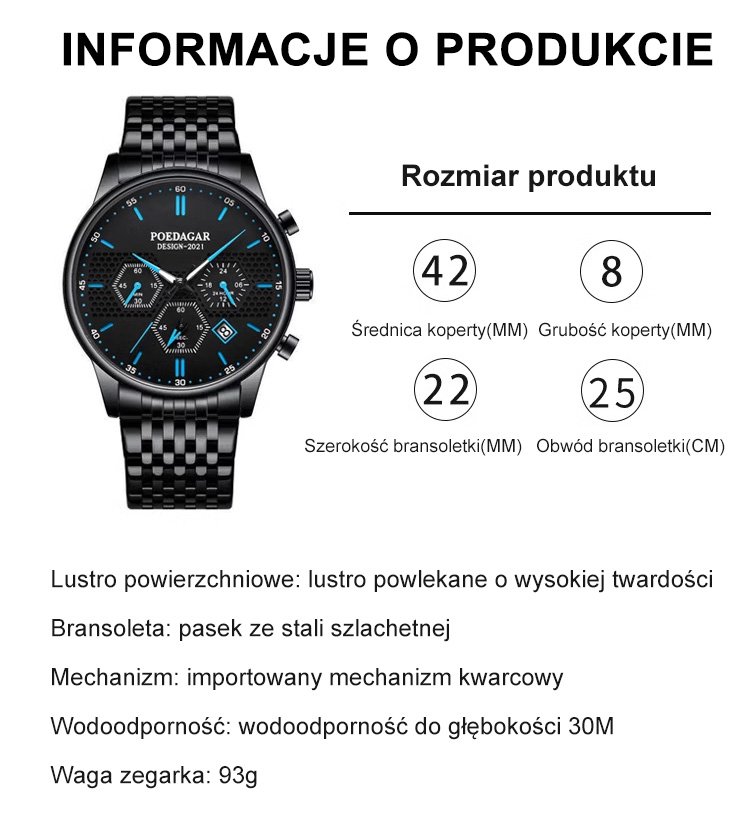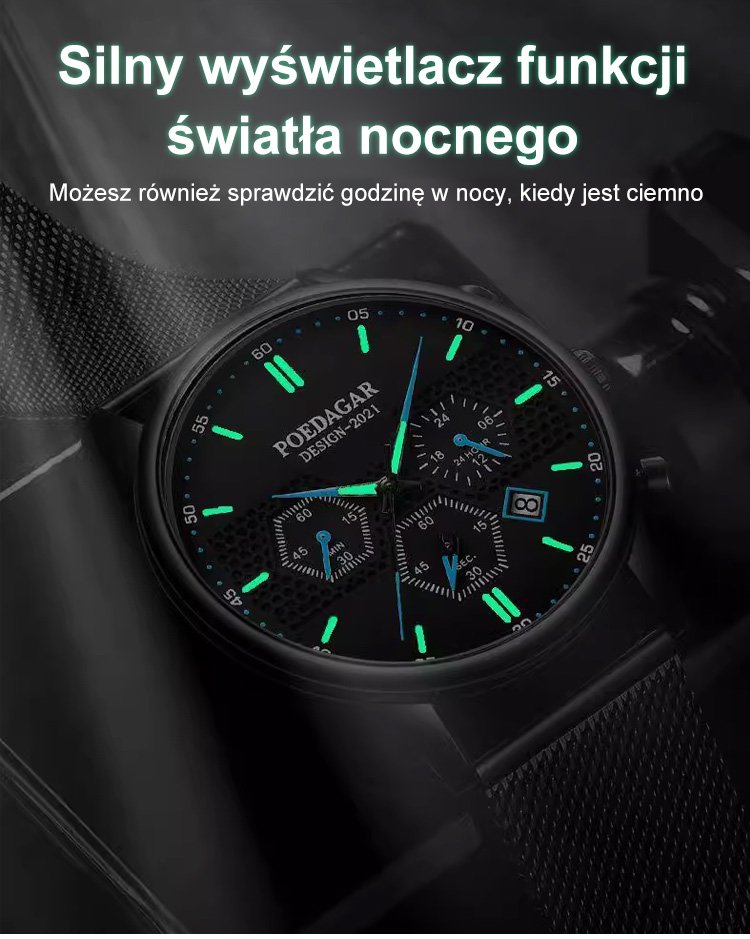 Szwajcarski wysokiej klasy świecący wodoodporny zegarek