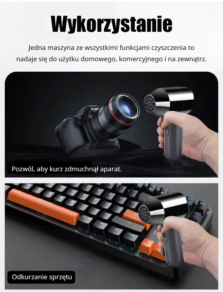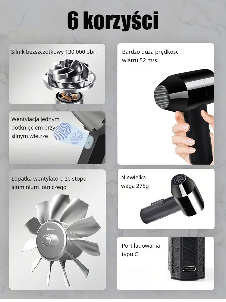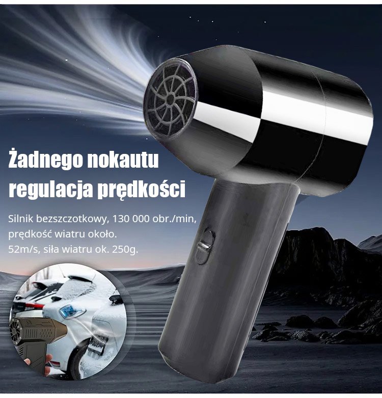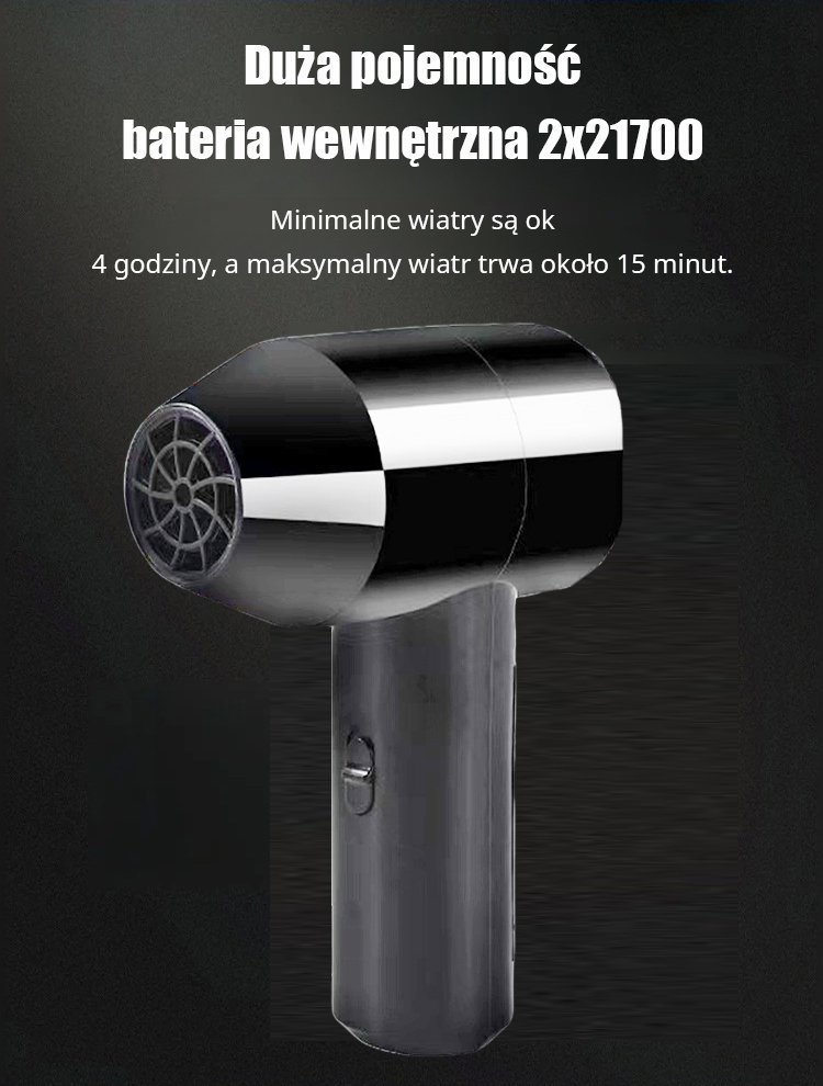 Silnik bezszczotkowy 130000rmp, prędkość wiatru do 52 metrów na sekundę, brak konieczności podłączania do prądu, rabat czasowy ograniczony!