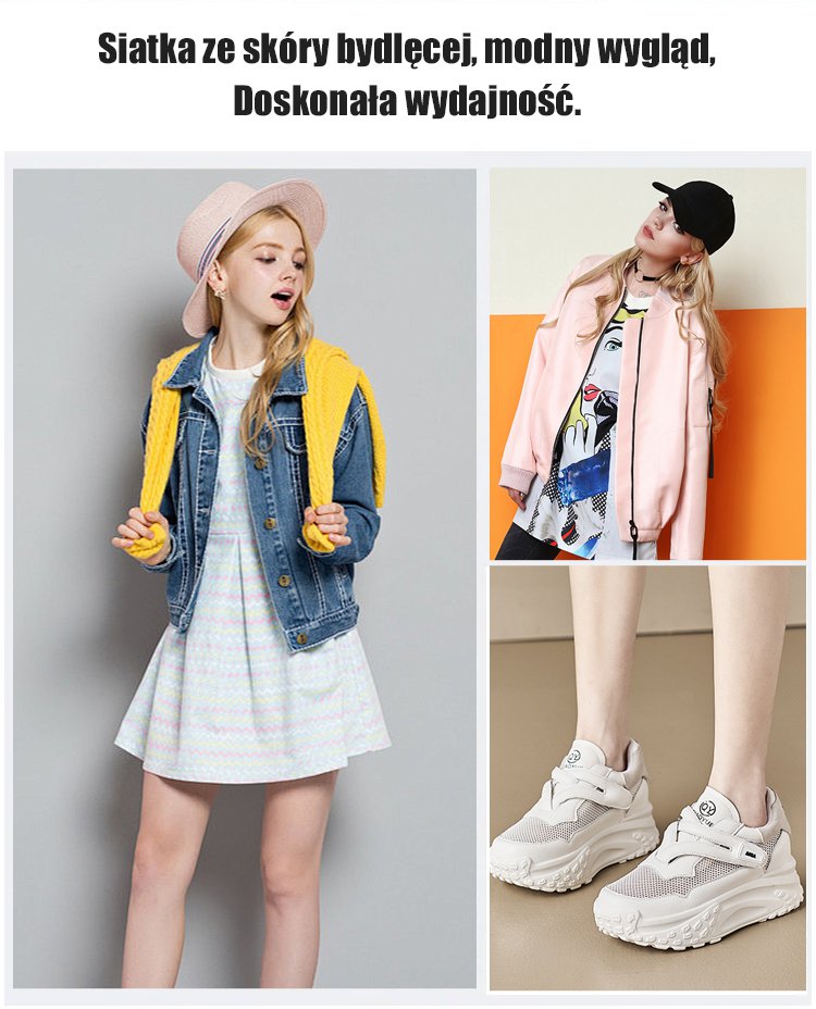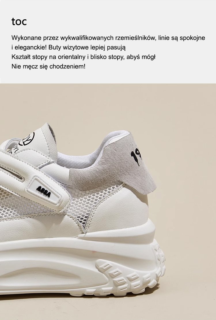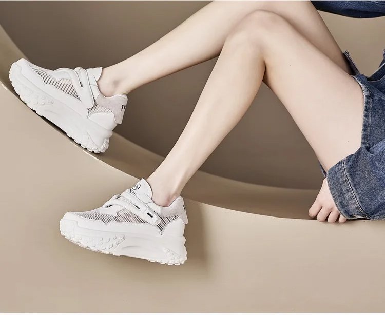 Oddychający i lekki Białe buty zwiększające wysokość, zapinane na rzepy