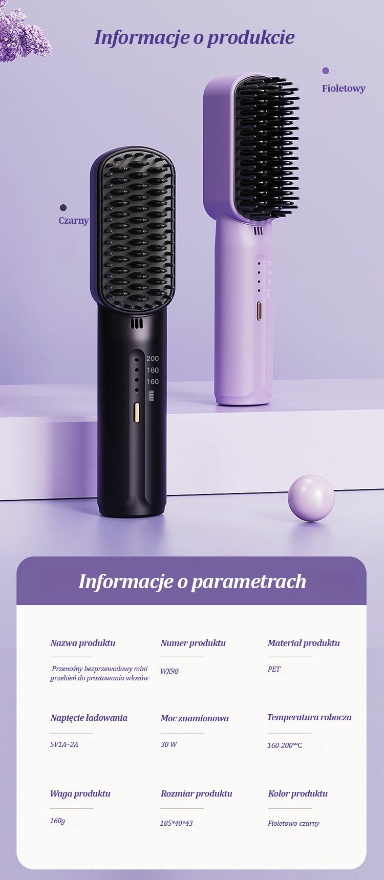 Jony ujemne nie szkodzą włosom Przenośny bezprzewodowy mini grzebień do prostowania włosów